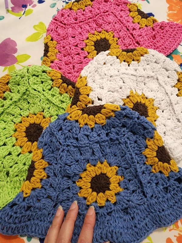 Los colores de fondo disponibles se despliegan en una lista para elegirlos. El centro del granny es con FLOR GIRASOL.
